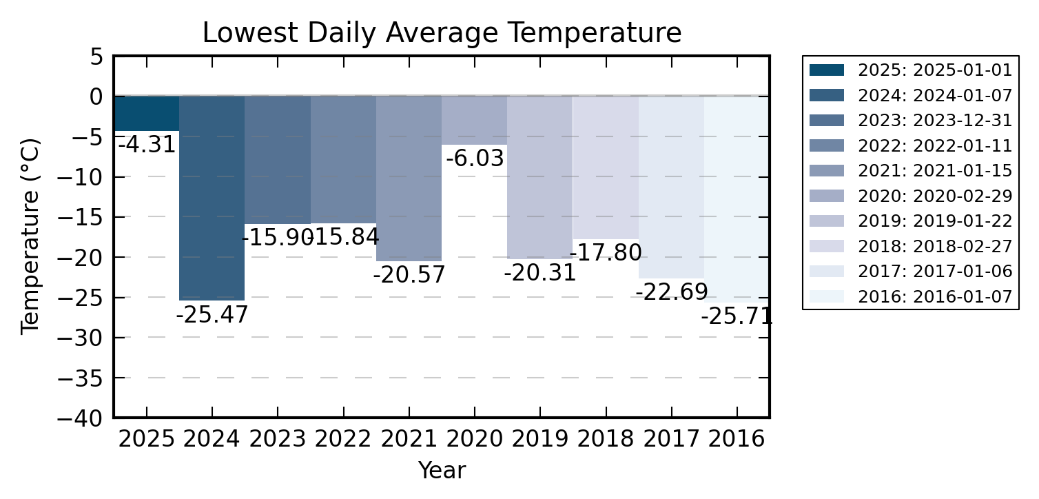 Matalin päiväkohtainen keskiarvolämpötila vuositasolla.